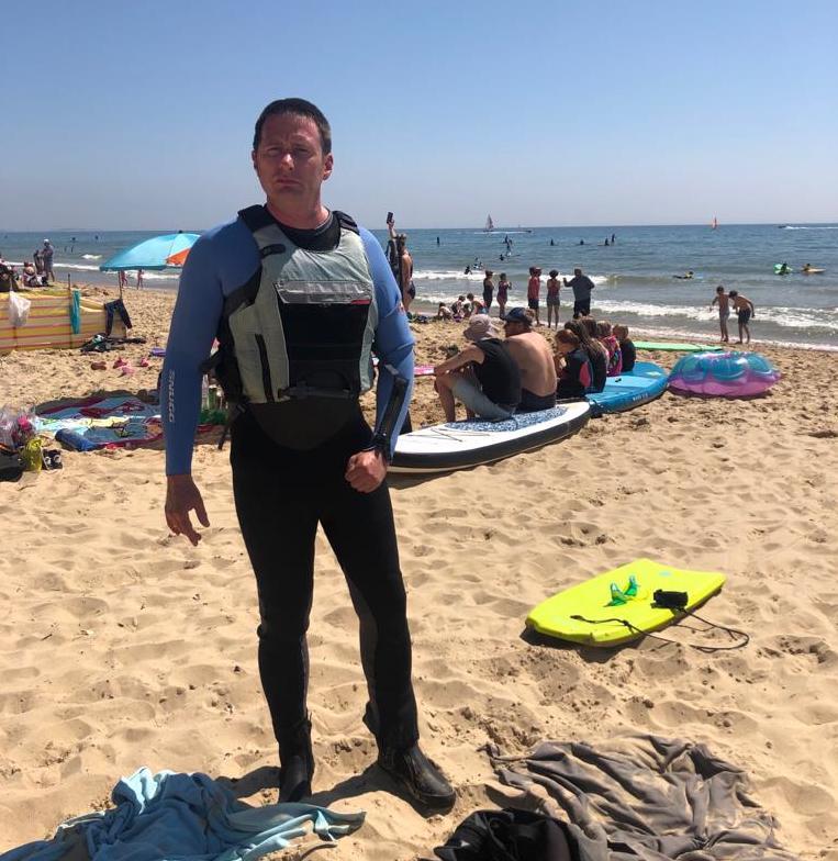 Will Ripper, stroke survivor and experience patient, enjoying time at the beach following his stroke in 2021